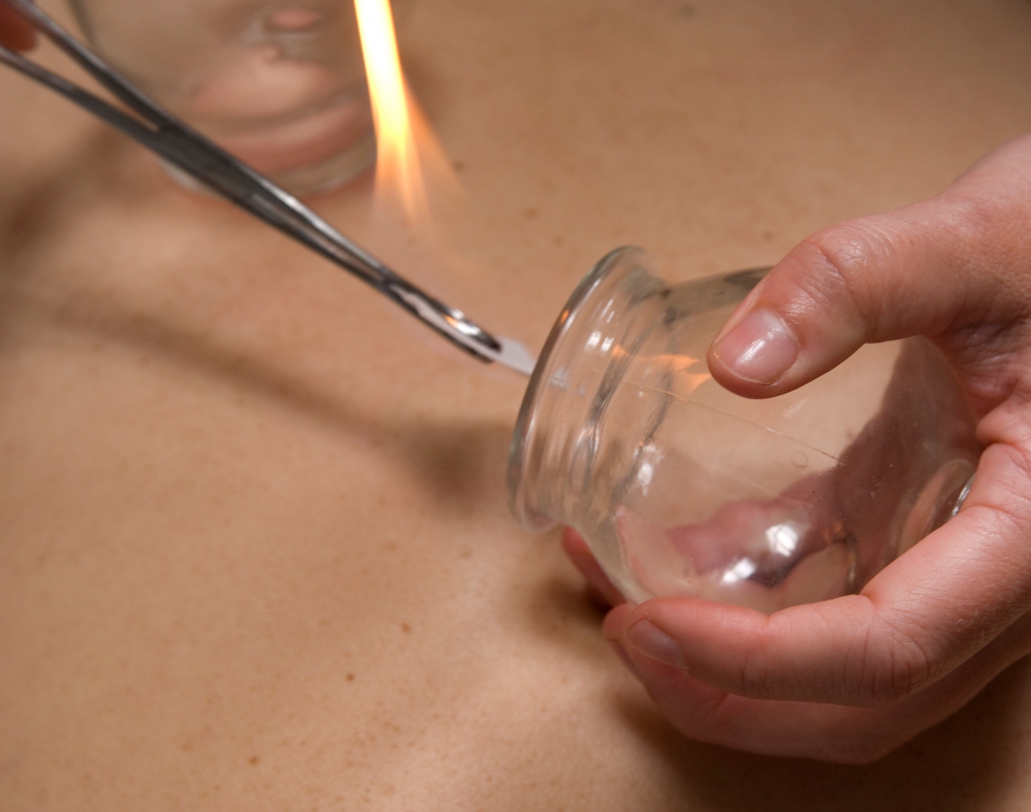 Fire cupping is an old method of creating vacuum in a glass cup and using that suction to relieve severe muscle tension, and to increase blood flow into an area and promote healing.